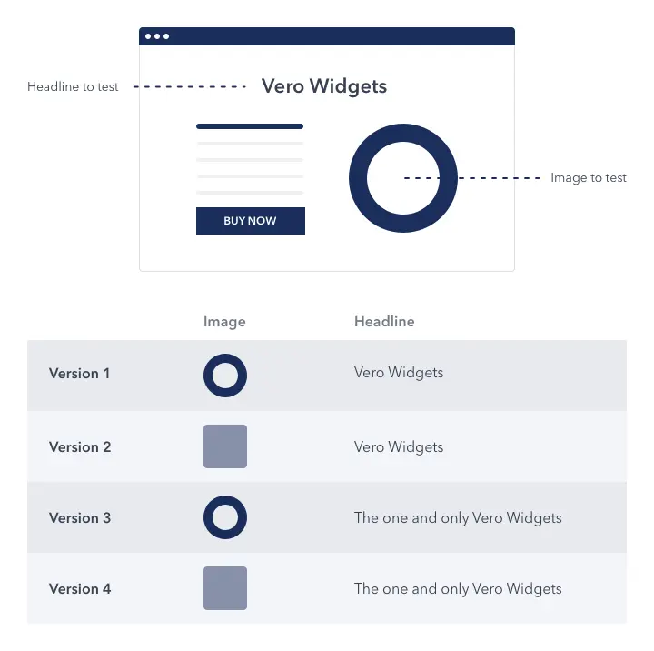 For instance, if you were trying to figure out which combination of a headline and widget would convert better, you’d do a multivariate test like the one below: