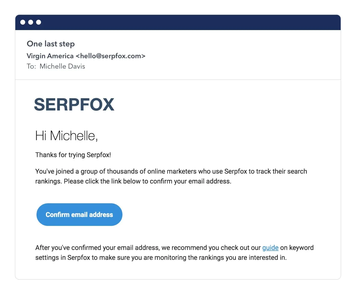 They personalized the email by using the user’s first name, and also reminded them why they signed up to Serpfox in the first place.