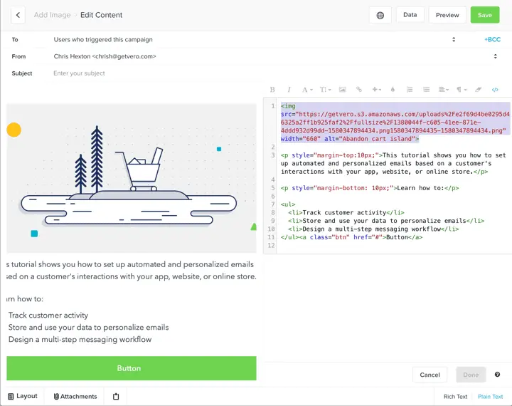 The final step in embedding an image in your email is to add some information to your HTML code.
