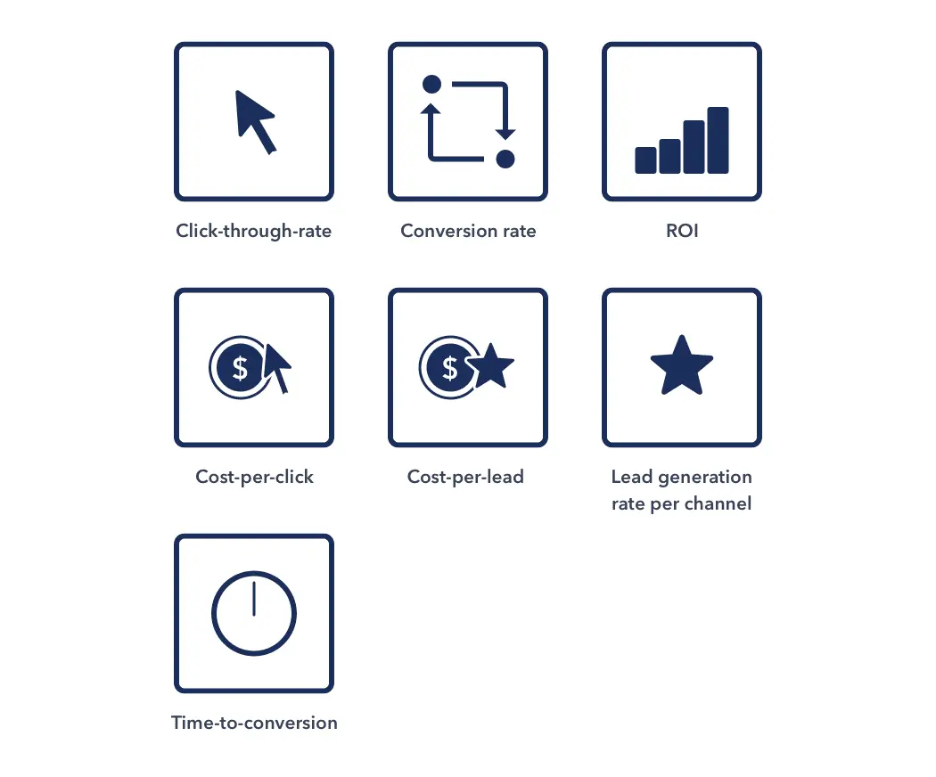 If you’re using paid acquisition methods, such as social ads or search engine marketing, you should track your costs per click. Having this top of the funnel metric empowers you to compare performance along the marketing funnel.If you were to only focus on the end goal of conversions, you’d have no idea where to focus improvements if your results weren’t up to par.