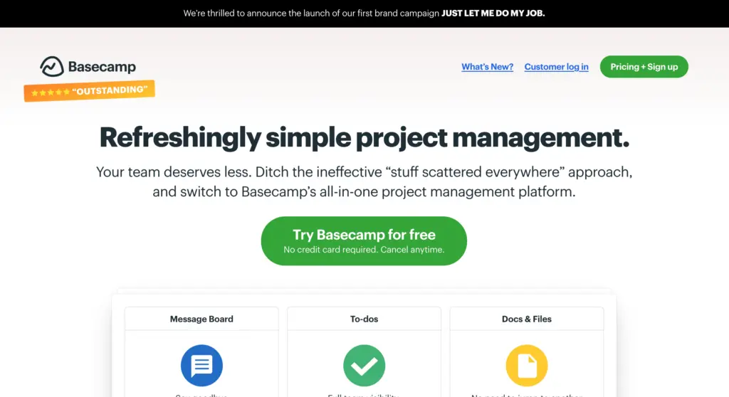 With Basecamp, it’s easy to understand the value they offer and why they’re a top choice in the market. Their straightforward messaging leaves no room for confusion by making it clear why Basecamp is the go-to solution for project management.