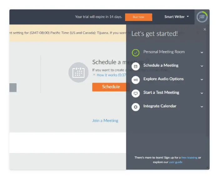 Similarly, you can use mobile notifications to draw attention to relevant documentation. In the product tutorial from GoToMeeting below, there are a few tasks highlighted, such as scheduling a meeting or integrating your calendar.
