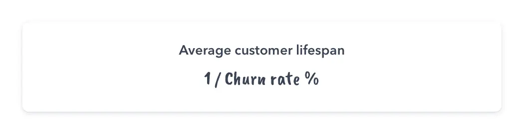 If you meet the average e-commerce retention rate of 28%, that means you have an annual churn rate of 72%. Using the equation above, your average customer lifespan would be 1.38 years.