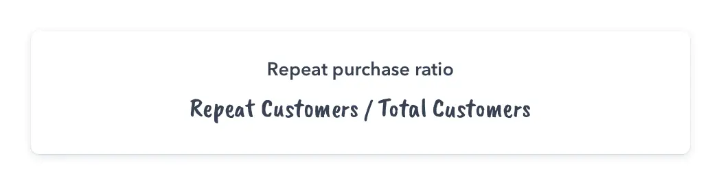 A customer’s repeat purchase ratio is similar to purchase frequency in that it measures how often buyers come back for more. To calculate this ratio, you’ll need to know how many customers purchased from you more than once.