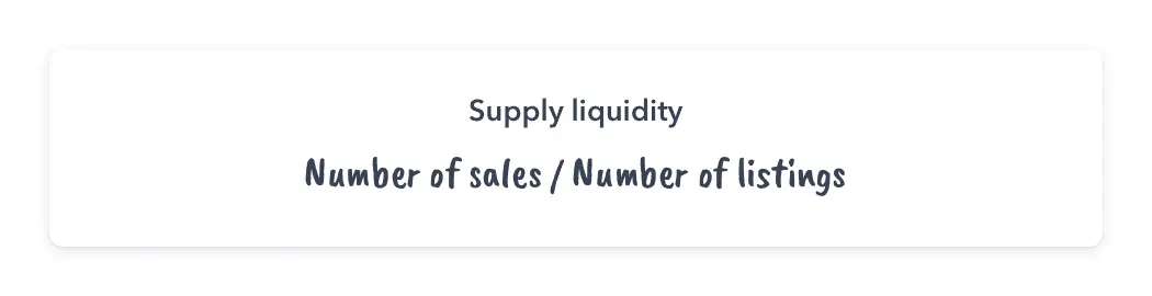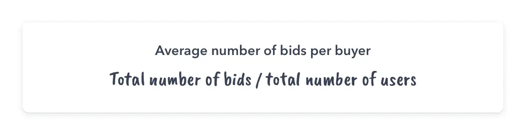 If your marketplace works with bids, you should analyze the average number of bids per buyer. When a bidder is new to a marketplace, they’ll likely start with a lower number of bids. However, as trust increases and each buyer places more bids, you’ll need less buyers per seller to complete a transaction.