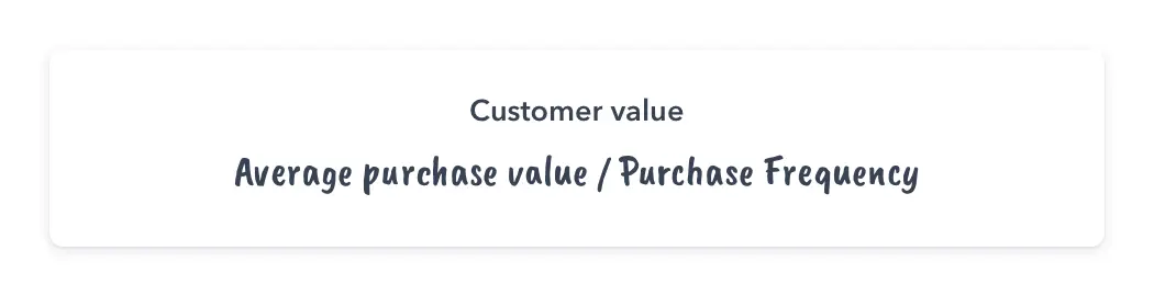 Using the two numbers you’ve just calculated, you can find your customer value. An average purchase value of $100 over a purchase frequency of 1.6 gives you a customer value of $62.50.
