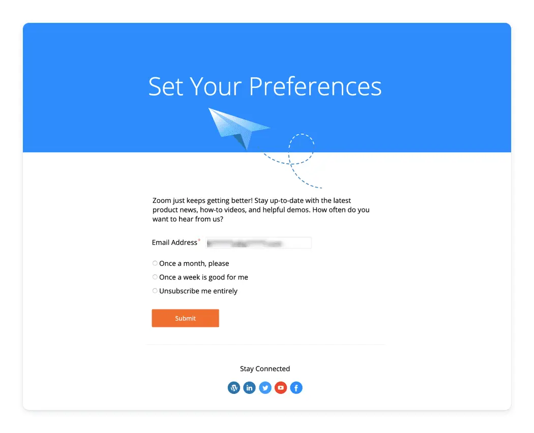 - Stepping down is better than stepping away. Taking a small break is better than losing the customer relationship entirely. Highlight your email preference center, like the one below, to let users customize communications, or introduce a lower-tiered plan.